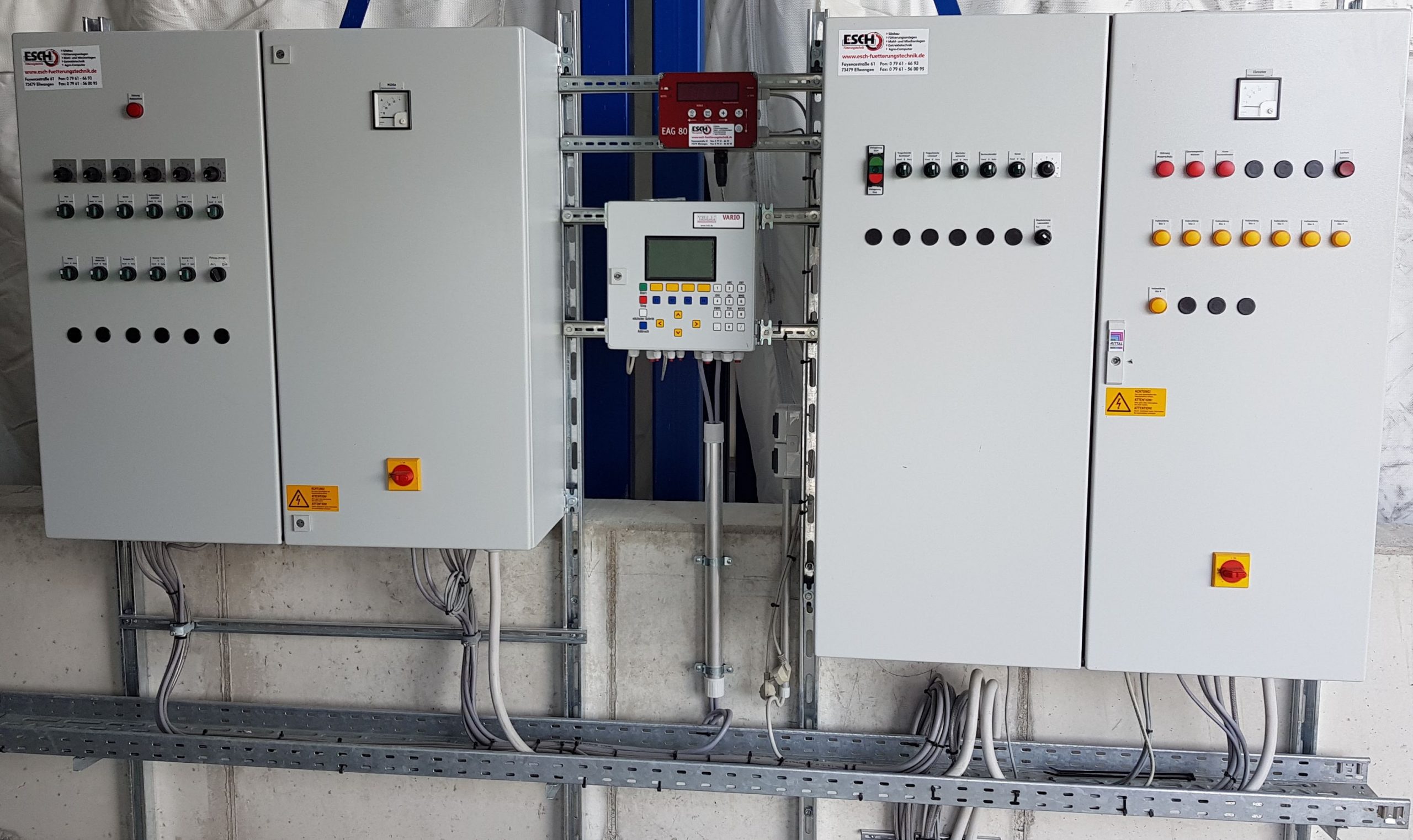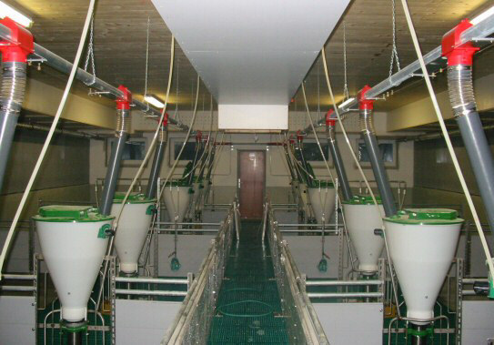 Die Technik von Esch umfasst die Phasenfütterung und in den Futtermittelsilos ist bereits die fertige Futtermischung enthalten. Die entsprechende Futterart wird auf eine Ringanlage aufgetragen. Anschließend wird das Futter durch die eingestellten Ausläufe dosiert. Wenn die Futterautomaten vollständig sind, füllt sich die Anlage automatisch.